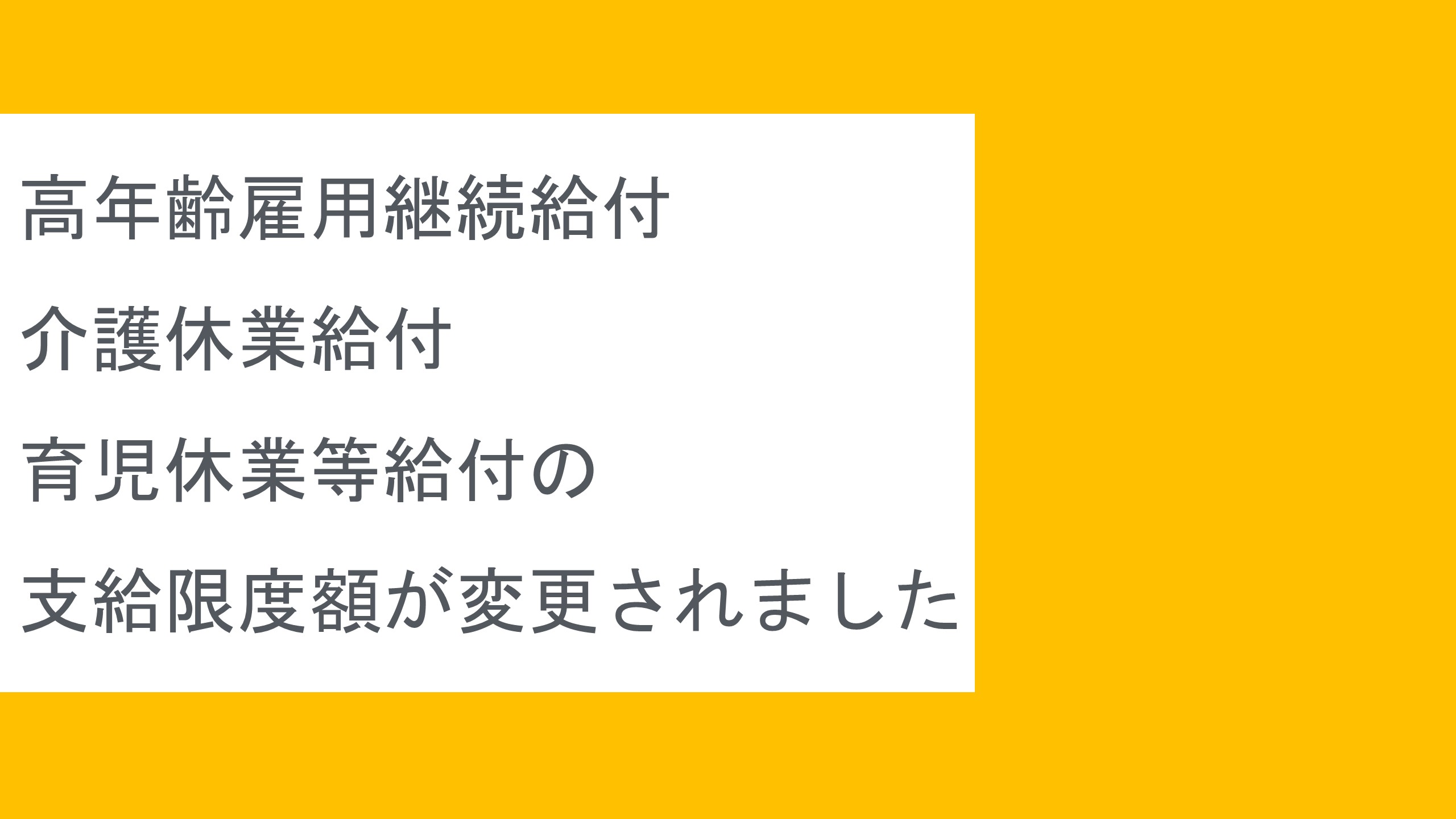 高年齢雇用継続給付・介護休業給付・育児休業等給付の支給限度額が変更されました